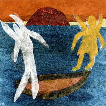 engelen en zon, collage, 20 x 20 cm, © 2002 roeland schweitzer
