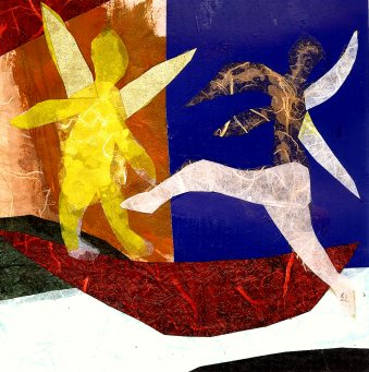 engel in rood bootje, collage, 20 x 20 cm, © 2002 roeland schweitzer
